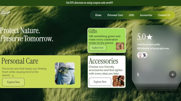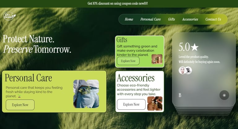 Built a website for Go Green, a brand promoting eco-friendly products and sustainable living for a healthier planet. 🌿